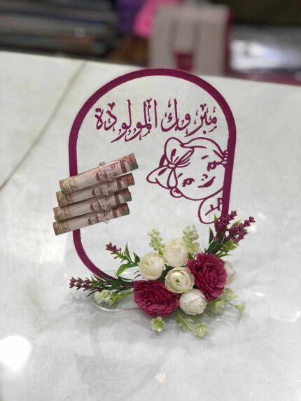 ستاند أكريليك استقبال مولودتصميم مميز مصنوع من أكريليك شفاف عالي الجودة مزوّد باسم الطفل ليكون لمسة شخصية فريدة في الاحتفال.يُستخدم