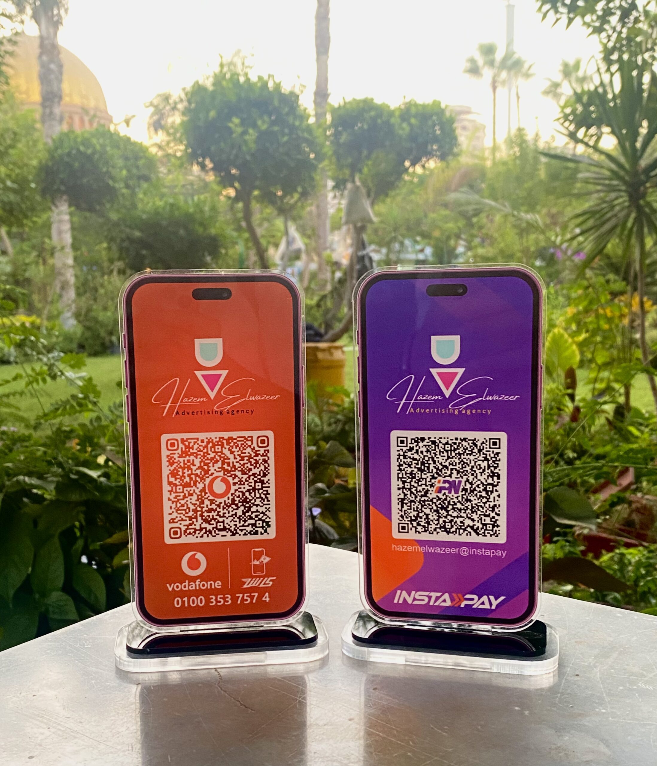 يتميز بتصميم عصري يبرز الـ QR Code الخاص بالدفع الإلكتروني عبر InstaPay، مما يجعل عملية الدفع أكثر سرعة وسهولة لعملائك.