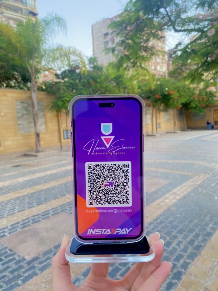 ستاند عرض للهاتف مع كود الدفع السريع InstaPay / المحافظ الإلكترونية